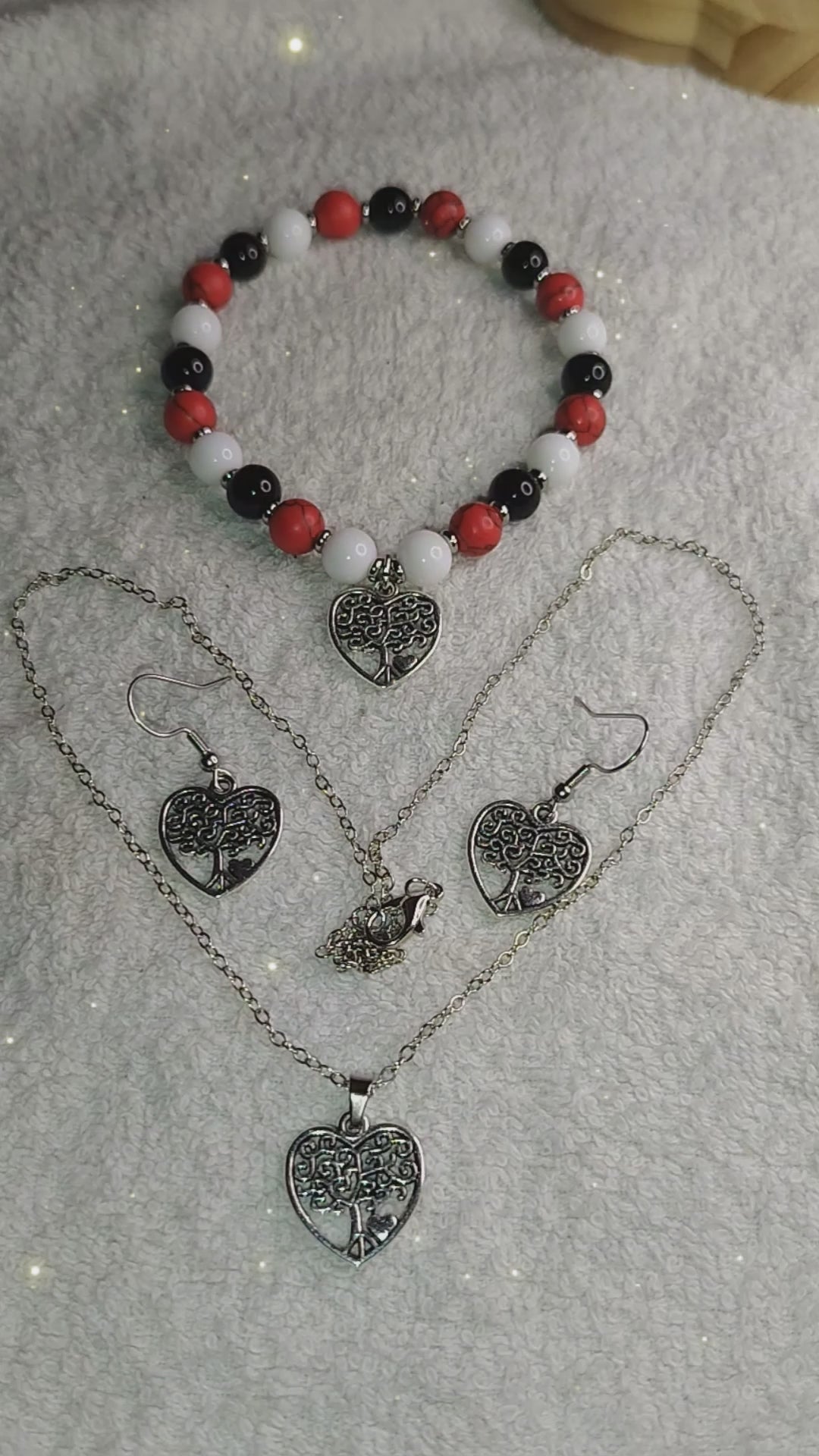 Armband aus Achat, Türkis und Onyx mit Lebensbaum - Herz - Marilu Handmade 🇩🇪